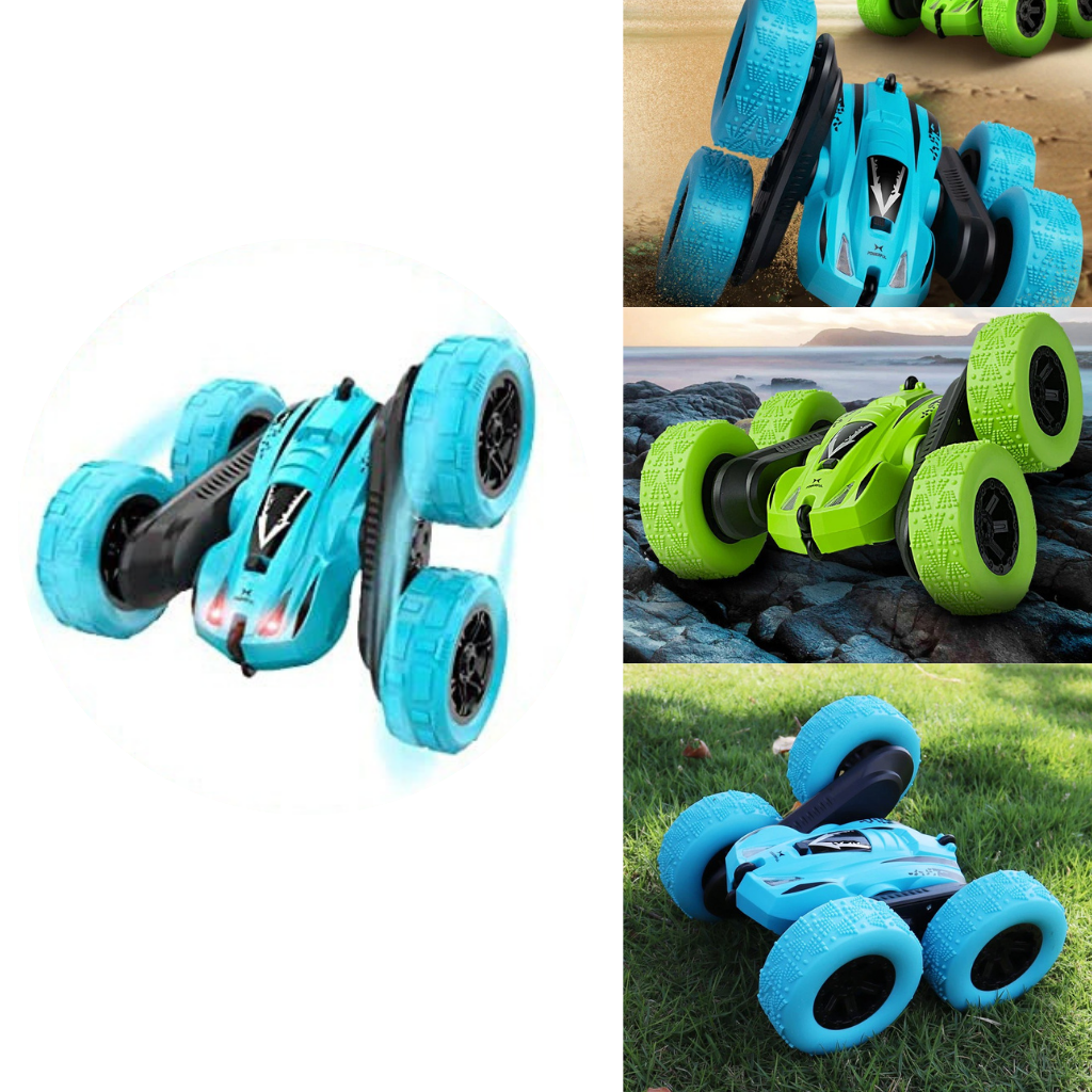 The extreme flexibility, double sided stunt tipper and the powerful 4-WD engine can conquer all kinds of road obstacles. You can bring it with you on your vacation or hiking trip, a guy’s trip, or let the kids play with it in their room, at the beach, in grass or on rocky roads, there is nothing the Double-Sided Remote-Controlled Car can not handle.