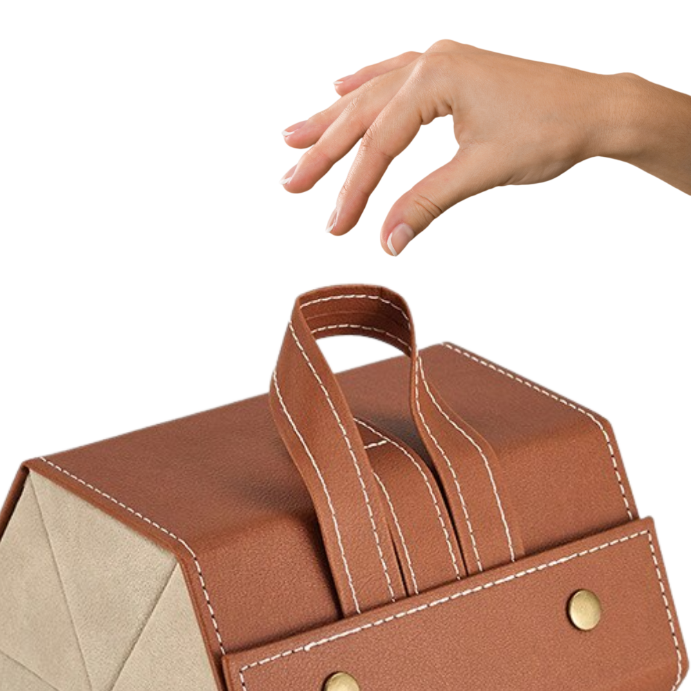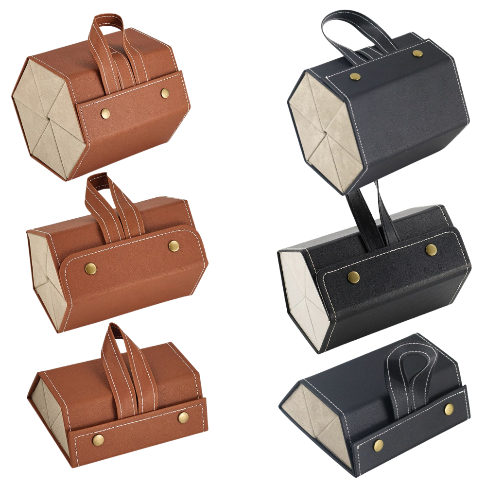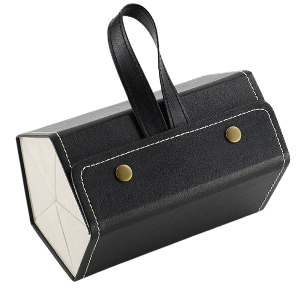 The glasses storage box keeps everything in one place. Especially useful when travelling and packing your luggage.
