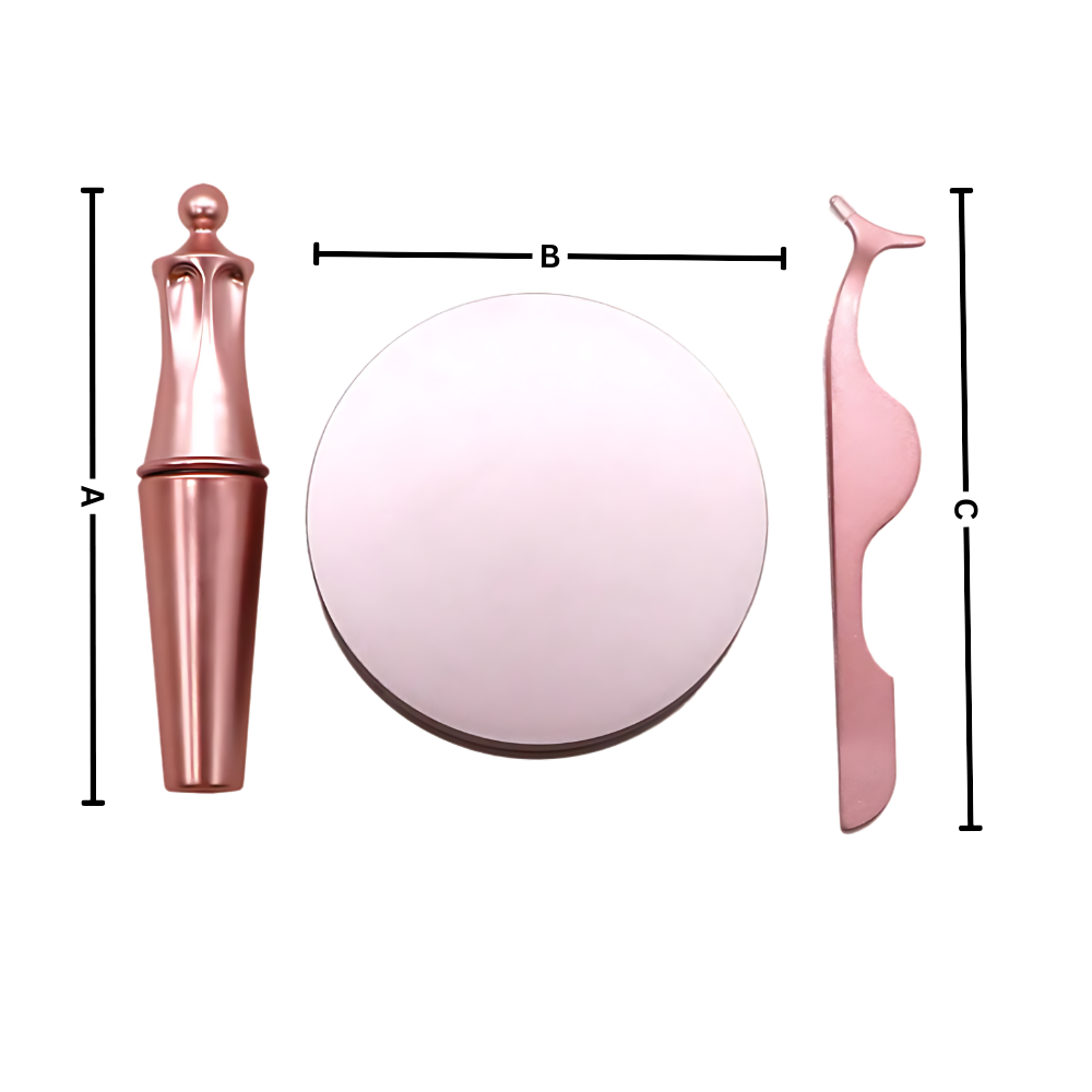 Size: Eyeliner- 100mm x 3.93 inch Eyelashes container: 83 mm x 3.26 inch Tweezers: 113 mm x 4.44 inch