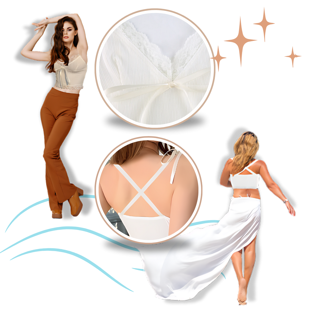 Soft Stylish Lace Trim Crop Top  - Enhanced Elegance - Ozerty